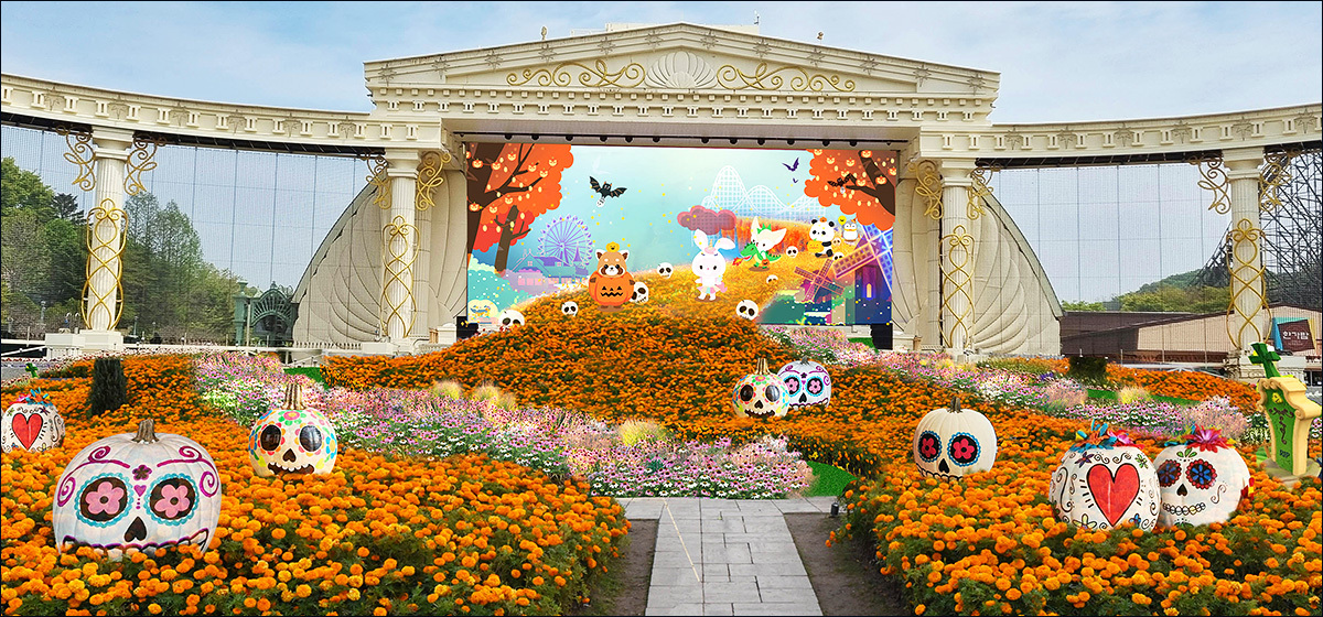끝없이 펼쳐지는 메리골드 꽃 길! 가을을 대표하는 꽃, 메리골드가 가득한 인피니티 가든에서 환상적인 할로윈을 보내보세요.