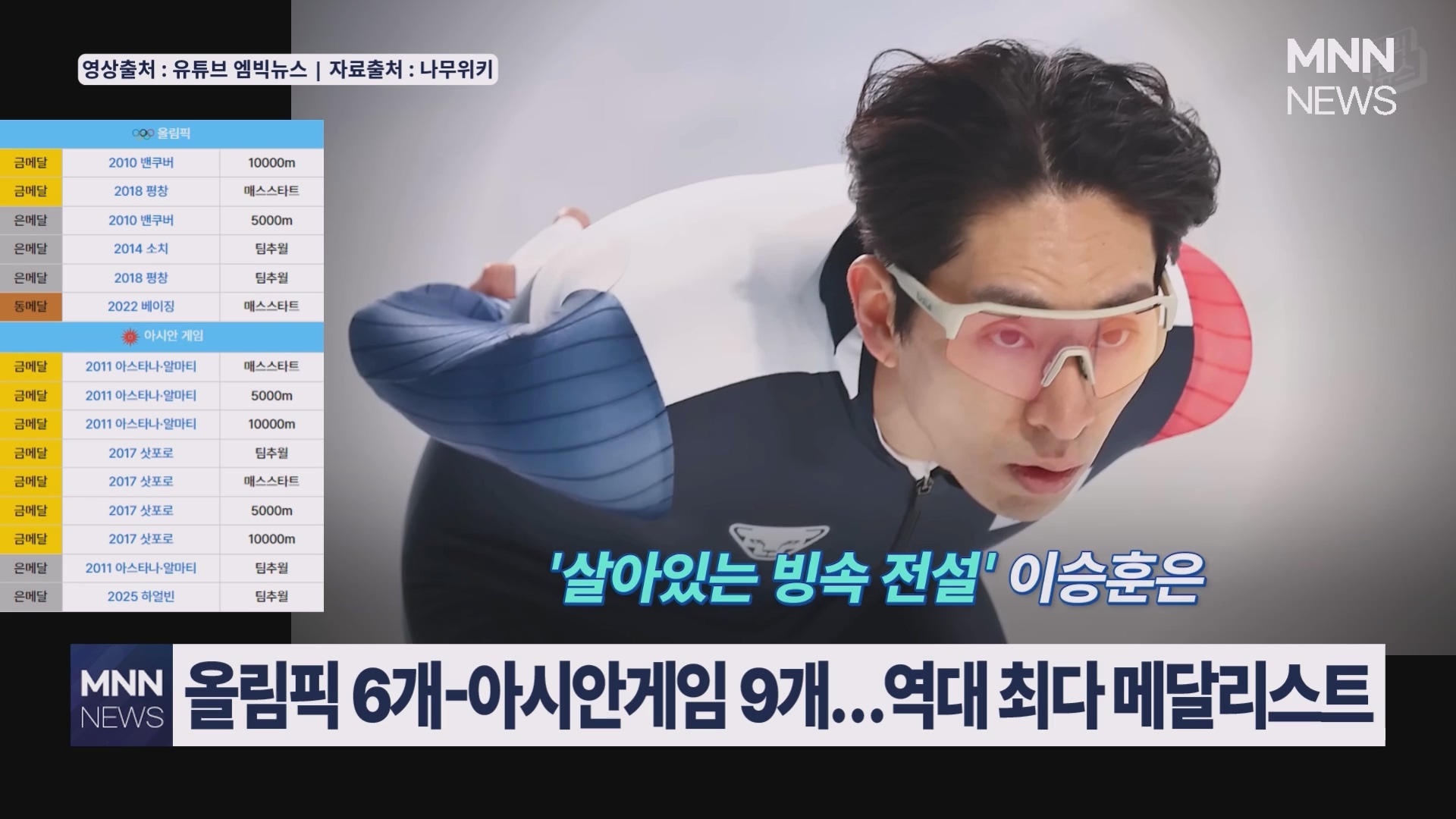 1988년생 철인, 한국 빙속의 살아있는 전설, 이승훈! 그는 다시 한 번 한국 스포츠사의 새 역사를 썼습니다. 동계아시안게임 역사상 최다 메달 기록을 경신한 그 순간!지금부터 함께 만나보시죠.