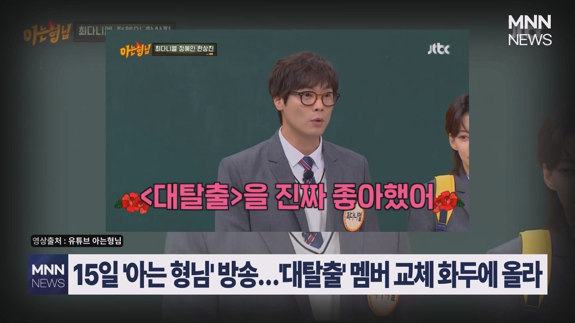 지난 15일 방송된 '아는 형님'에서는 영화 '써니데이'의 주역 한상진, 최다니엘, 정혜인이 게스트로 출연했는데요. 이 과정에서 최다니엘이 '대탈출'의 열렬한 팬임을 밝히면서 자연스럽게 '대탈출' 멤버 교체 논란이 화두에 올랐습니다.
